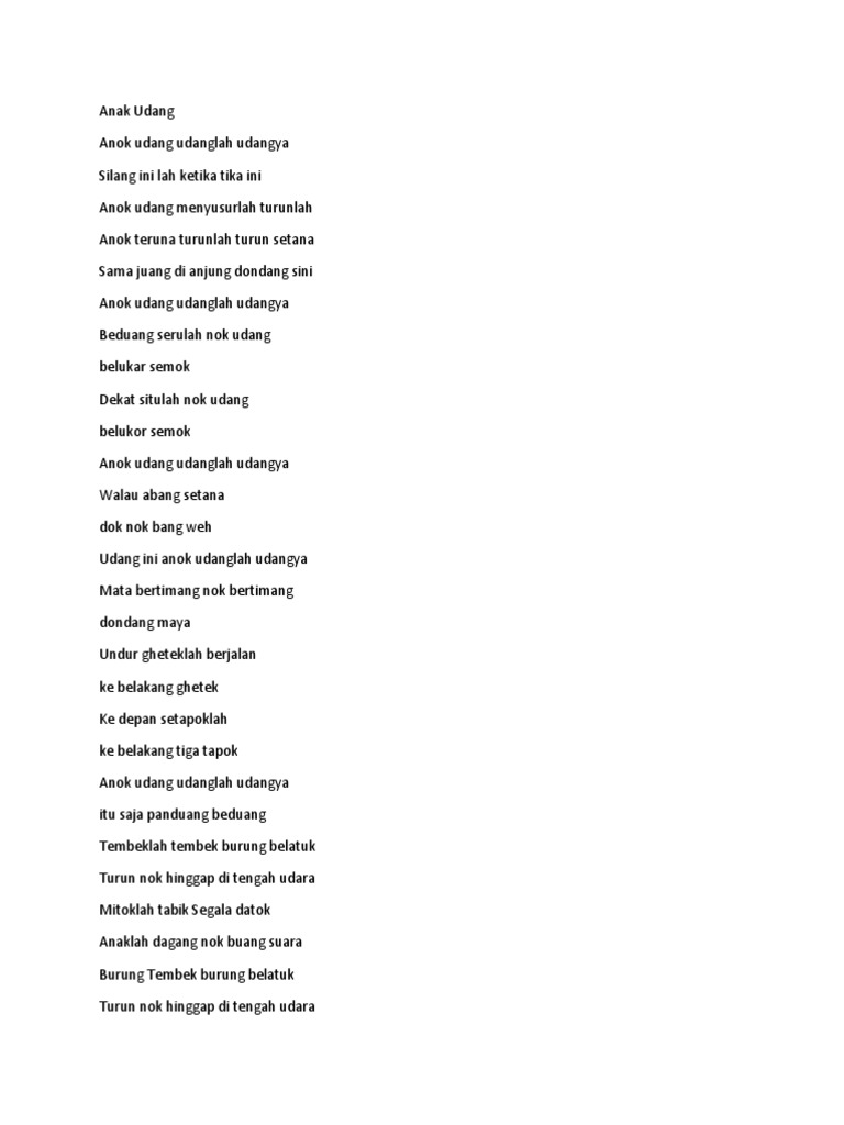 Hok dia lokek hok orang dia nok. Hok dia lokek hok orang dia nok. Lagu-lagu rakyat pada zaman dahulu dipersembahkan menggunakan gendang rebana atau tepukan tangan sebagai ritma.